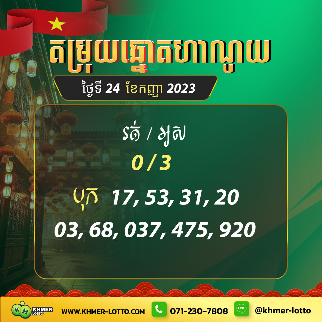 តម្រុយឆ្នោតហាណូយ ថ្ងៃទី 24 ខែកញ្ញា 2023 ឆ្នោតហាណូយអនឡាញ ងាយស្រួលទិញ ផ្ទេរប្រាក់លឿន ទិញរឆ្នោតតាមអនឡាញនៅទីនេះ សង់ខ្ពស់បំផុត បញ្ចុះតម្លៃច្រើន ងាយស្រួលលេងជាមួយនិងប្រព័ន្ធទំនើប រួមវេបសាយឆ្នោតអនឡាញ មានគ្រប់ប្រភេទ ដូចជា #ឆ្នោតរដ្ឋាភិបាល #ឆ្នោតឡាវ #ឆ្នោតហាណូយ Khmer lottery.com គឺជាវេបសាយចាក់ឆ្នោតអនឡាញដ៏ល្អបំផុត ជាមួយនឹងប្រព័ន្ធចាក់ឆ្នោតដ៏ទំនើបដែលងាយស្រួលយល់ ចុចពីរបីដងក៏បានហើយ