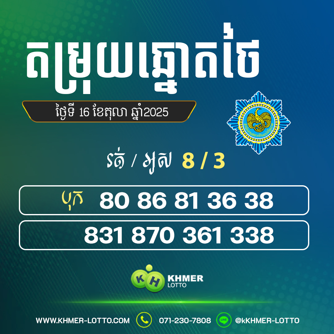 តម្រុយឆ្នោត BAAC ថ្ងៃទី 16 តុលា 2025